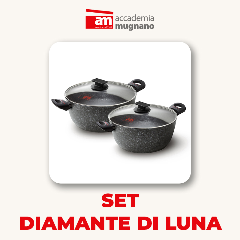 Coppia casseruole antiaderenti 20 + 24 cm 2 maniglie con coperchio in vetro – Diamante di Luna